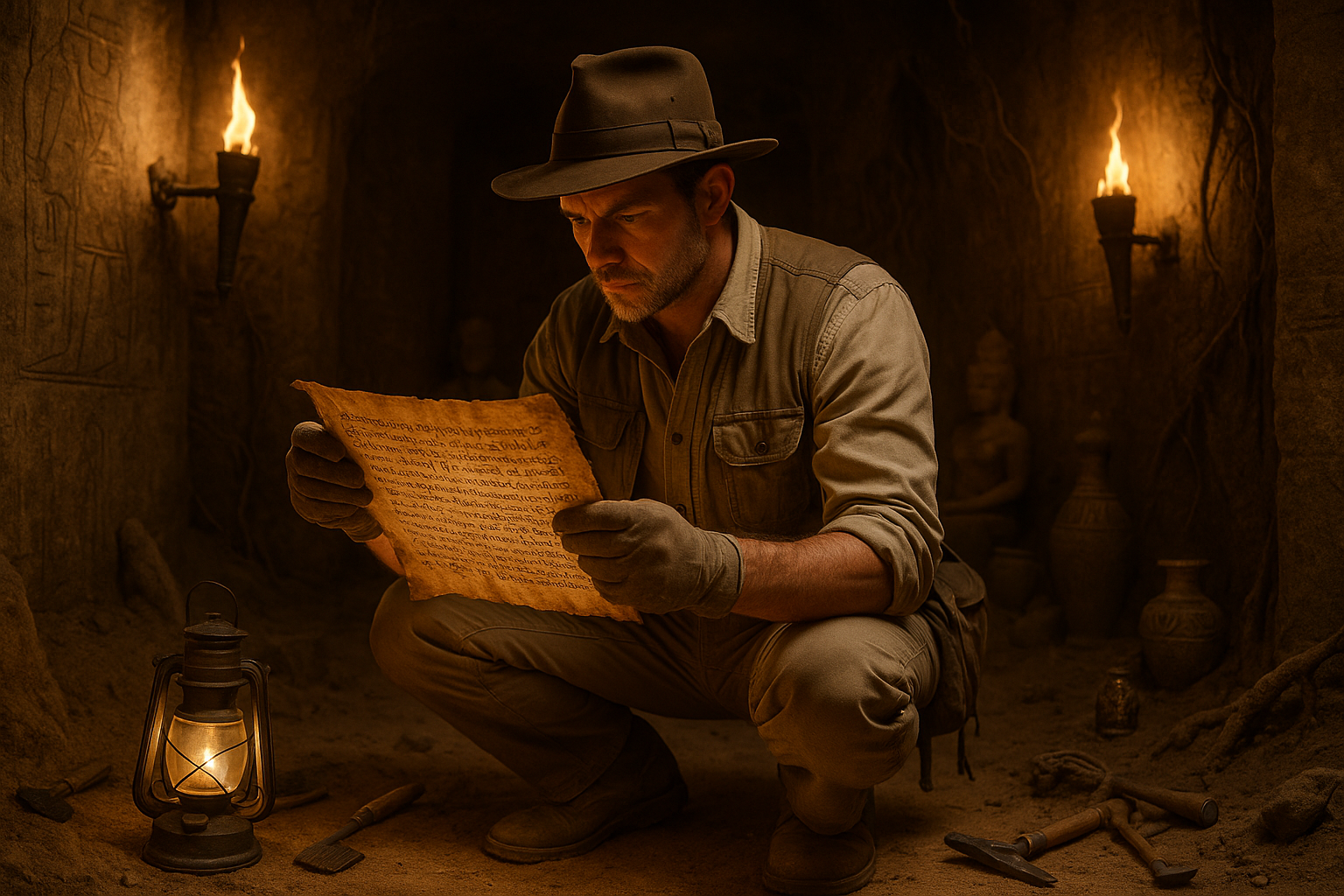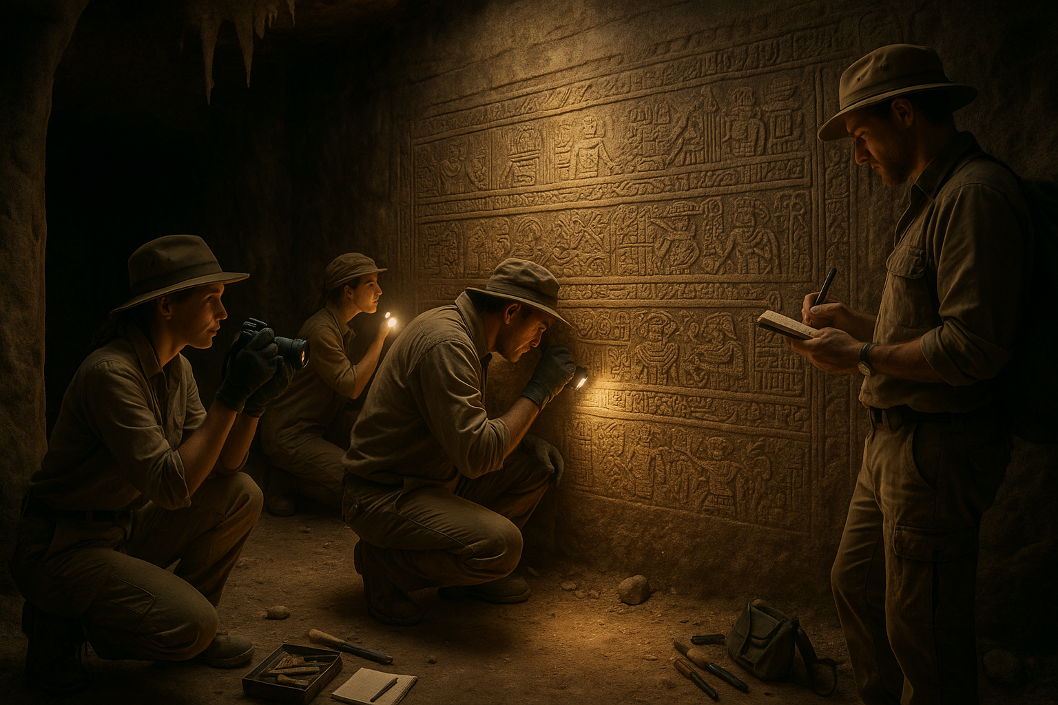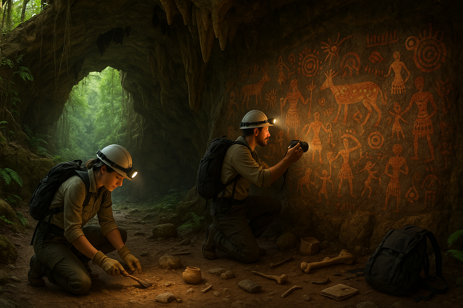 In the dim glow of torchlight, the walls of an ancient cave tell stories that have echoed through the ages. These